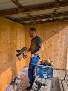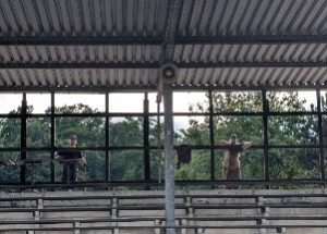 Fleißige Helfer am Werk Die Rückseite der Tribüne – mit Holz verschalt – war auch durch