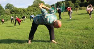 nicht Yoga anbieten könne. Gerd hatte sich nämlich neu orientiert und in Mettmann bei Düsseldorf eine Yogaschule gegründet. Erst etwas Skepsis, aber nach zwei Gesprächen mit Hermann Keune wagten beide einen Start. Als am Montag eine Teilnehmerin sagte, in der nächsten Woche wären wir schon 10 Jahre zusammen, waren alle bass erstaunt, wie schnell die Zeit verflogen ist. Am Montag werden wir unser Jubiläum nicht vergessen! Besonders schön wäre es allerdings, wenn unsere Gruppe noch ein paar neue Mitglieder begrüßen könnte – es lohnt sich!